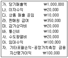 다음은 유통업을 영위하는 (주)대한의 2018년도 경영성과에 대한 회계 자료이다. 기능별 포괄손익계산서상에 기입될 당기 매출원가, 당기순손익과 총포괄손익을 계산한 것으로 옳은 것은? (단, 매출총이익률은 30%이며, 법인세 비용은 고려하지 않는다.) (순서대로 매출원가 / 당기순손익 / 총포괄손익)