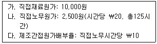 상공회사는 제품A를 완성하였다. 다음 자료에 의하면 제품A의 원가는 얼마인가?