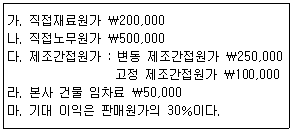 (주)대한공업의 다음 자료에 의하여 가공원가와 판매가격을 계산한 것으로 옳은 것은?