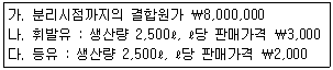 결합원가를 상대적 판매가치법에 의해 배부할 경우, 다음 자료에 의해서 휘발유에 배부될 결합원가를 계산하면 얼마인가?