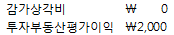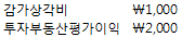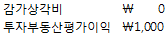 20X1년초에 운용리스로 제공할 목적으로 건물을 취득하였다. 건물의 취득원가는 ₩10,000이며, 잔존가치는 ₩0, 내용연수는 10년으로 추정된다. 동 건물에 대하여 공정가치모형을 적용하기로 한다. 20X1년 말 현재 공정가치가 ₩11,000이라면, 20X1년도의 포괄손익계산서에 계상되는 동 건물에 대한 감가상각비와 투자부동산평가손익은 각각 얼마인가? (단, 법인세효과는 없다.)