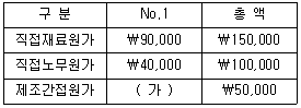 다음 자료는 제조지시서 No.1의 제조원가 내역이다. (가)에 해당하는 금액으로 옳은 것은? (단, 제조간접원가는 직접노무원가를 기준으로 배부한다.)
