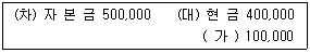 (주)상공기업은 1주당 액면금액 ₩5,000의 주식 100주를 1주당 ₩4,000에 현금으로 매입하여 소각하였다. 이에 대한 분개를 다음과 같이 하였다. (가)에 해당하는 계정과목으로 옳은 것은?