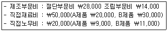 제조부문비 제품별 배부액 총액 ₩42,000을 직접원가법으로 계산할 때, A제품에 배부되는 제조부문비 총액은 얼마인가?