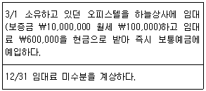 다음은 ㈜상공의 임대료에 관한 거래이다. 기말 결산일(12/31) 정리분개로 옳은 것은?