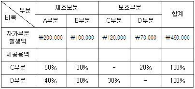 다음은 부문별 원가계산 자료이다. 보조부문비를 단계배부법으로 배부할 때의 내용으로 옳지 않은 것은?