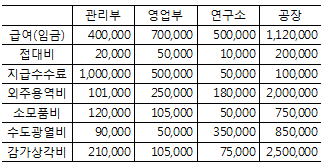 (주)한빛전자는 전화기를 제조하는 기업이며 서울에는 관리부, 영업부, 연구소가 있으며, 수원에는 제조공장이 있다. 다음 자료에 의하면 제조간접비 총액은 얼마인가? (단위 : 원)