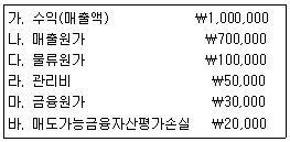 (주)상공의 자료를 이용하여 포괄손익계산서에 표시되는 당기 순이익을 계산한 것으로 옳은 것은?