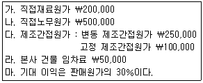 (주)대한공업의 다음 자료에 의하여 가공원가와 판매가격을 계산한 것으로 옳은 것은?