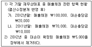 다음 자료를 이용하여 20X2년도에 회사가 인식한 대손상각비는 얼마인가?