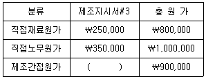 다음 자료로 제조간접원가를 직접원가법을 사용하여 배부할 때, 제조지시서#3의 제조원가는 얼마인가?