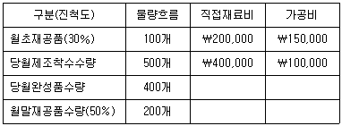 다음 자료에 의하여 월말재공품 원가를 계산한 것으로 옳은 것은? (단, 직접재료비는 제조 착수 시에 전부 투입되고, 가공비는 균등하게 투입되며, 월말재공품 평가는 평균법에 의한다.)