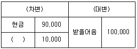 A 회사는 받을어음 \100,000을 거래은행에서 할인하여 \90,000을 수취하였다. 매출채권의 할인이 매각거래(위험과 보상의 이전)에 해당한다면 다음의 회계처리에서 괄호 안에 들어가야 할 계정과목은 무엇인가?
