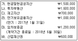 다음은 (주)상공의 2016년 말 현재 자산 관련 자료이다. 이를 토대로 재무상태표를 작성하고자 할 때, 유동자산의 합계는 얼마인가? (단, 제시된 자료 이외에는 고려하지 않는다.)(오류 신고가 접수된 문제입니다. 반드시 정답과 해설을 확인하시기 바랍니다.)