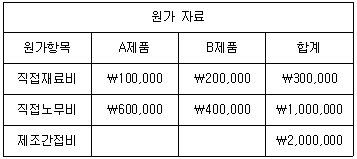 다음은 대한공업사의 제품 생산과 관련하여 당월에 발생한 원가자료이다. A제품의 당월 총 제조원가를 계산한 것으로 옳은 것은? (단, 제조간접비는 직접노무비법을 기준으로 배부한다.)