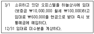 다음은 ㈜상공의 임대료에 관한 거래이다. 기말 결산일(12/31)정리분개로 옳은 것은?