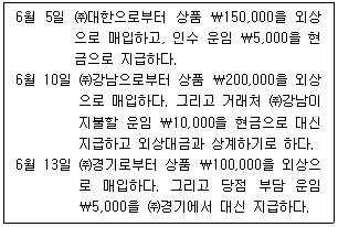 다음은 ㈜상공의 6월 중에 발생한 외상 매입 관련 자료이다. 6월 중 상품의 순매입액과 외상매입금 계정의 6월말 잔액으로 옳은 것은?(순서대로 순매입액, 외상매입금)