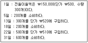 다음은 (주)대한의 10월 중 재료의 입출고에 대한 내역이다. 계속기록법 하에서 선입선출법을 이용하는 경우, 10월 말 재료의 재고액은 얼마인가?