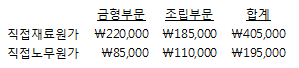 (주)상공의 20X1년 부문별 제조원가예산은 아래와 같다.