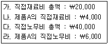 직접원가를 기준으로 제조간접비 총액 ₩30,000을 배부한다. 이때 제품A의 제조간접비 배부액은 얼마인가?