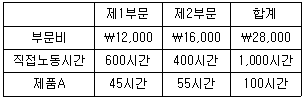 두 개의 제조부문(제1부문과 제2부문)을 이용하여 제품을 생산 하고 있는데, 직접노동시간을 기준으로 제조간접비를 배부하고 있다. 공장전체배부율을 사용하는 경우와 부문별배부율을 사용 하는 경우 각각에 대하여 제품A의 제조간접비 배부액을 계산 하면 얼마인가?