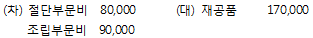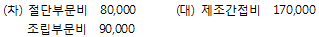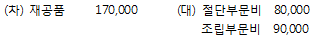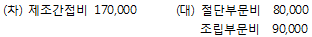 (주)상공은 월중에 절단부문비 ₩100,000과 조립부문비 ₩120,000을 예정배부하였다. 월말에 집계된 부문비의 실제 발생액은 절단부문 ₩80,000과 조립부문 ₩90,000으로 집계 되었다. 부문비 실제발생액을 인식하는 분개로 옳은 것은?