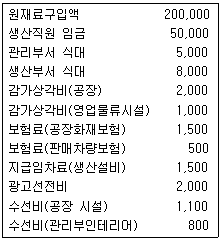 다음은 제조기업인 ㈜대한의 회계 자료 중 일부이다. 제조간접원가에 포함될 금액은 얼마인가?