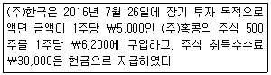 (주)한국의 주식 취득원가를 계산한 금액으로 옳은 것은?