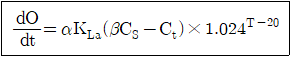 물의 산소전달률을 나타내는 다음 식에서 보정계수 β가 나타내는 것으로 옳은 것은?