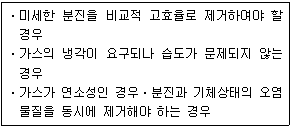 대기오염제어장치로서 분진 제거 시 <보기>의 조건을 충족하는 집진시설로 가장 옳은 것은?