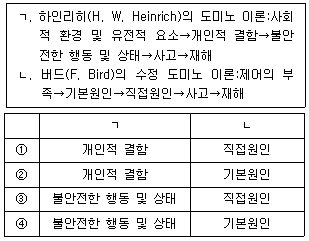 다음은 재해 발생 과정에 관한 이론이다. 각 이론에서 재해 발생을 방지하기 위해 제거해야 하는 단계가 옳게 나열된 것은?