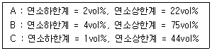 다음의 가연성 가스(A, B, C) 중 위험도가 낮은 것에서 높은 순서로 옳게 나열한 것은?