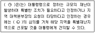 다음은 「재난 및 안전관리기본법」상 특별재난지역의 선포와 관련된 내용이다. ( ) 안에 들어갈 내용으로 옳은 것은?(순서대로 ㉠, ㉡)