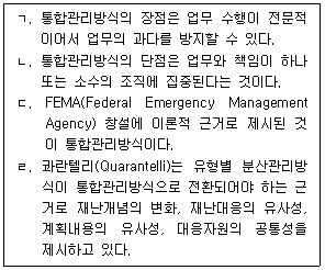 재난관리방식에서 유형별 분산관리방식과 통합관리방식에 관한 설명으로 옳은 것만을 <보기>에서 모두 고른 것은?