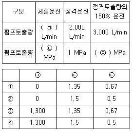펌프성능시험 결과 '양호' 판정을 받은 옥내소화전설비 주펌프의 성능시험표이다. ㉠~㉢에 들어갈 수 있는 수치로 옳은 것은? (단, 문제에서 제시한 사항 외의 것은 고려하지 않음)