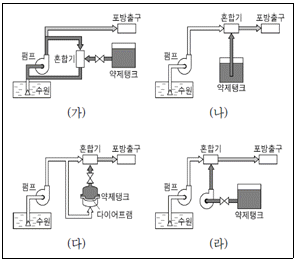 (가) ~ (라)의 포소화약제 혼합방식에 관한 설명으로 옳지 않은 것은?