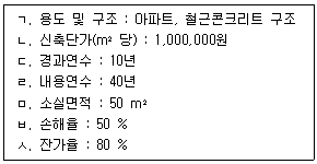 화재 피해조사 시 <보기>와 같은 조건의 '건물 피해산정' 추정액은?