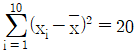 10개의 자료 (x1, y1), (x2, y2), …, (x10, y10)에 대하여 단순선형회귀모형 yi = α+βxi+εi (i = 1, 2, …, 10)를 적합하고자 한다.