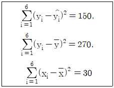 자료 (xi, yi) (i= 1,2,…,6)에 단순선형회귀모형 yi= β0+β1xi+εi를 최소제곱법으로 적합하여 다음 값을 얻었다.
