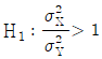 정규분포를 따르는 두 모집단 N(μX,σ2X)과 N(μY, σ2Y)에서 각각 독립표본 X1,X2,…,X5와 Y1,Y2,…,Y6을 임의추출하여 구한 표본분산을 순서대로 24와 9라고 하자. 확률변수 W는 분자와 분모의 자유도가 각각 4와 5인 F분포를 따를 때, 가설