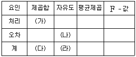 다음 표는 세 학생 집단 A, B, C의 시험성적을 비교하기 위해 각 집단에서 명씩 임의추출하여 작성한 분산분석표의 일부이다.