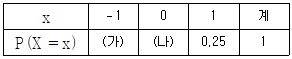 확률변수 X의 확률분포가 다음과 같다.