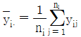 수준이 3개이고 반복수가 각각 n1=5, n2=10, n3=15인 일원배치법으로부터 얻은 자료를 yij(i=1,2,3, j=1,2,…,ni)라 하고, i번째 수준에서의 평균을