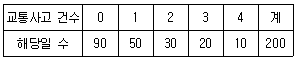 어느 도시에서 하루에 발생하는 교통사고 건수를 지난 200일 동안 조사하여 다음 표와 같이 정리하였다.