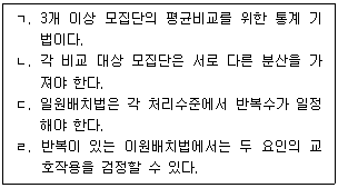 다음 분산분석에 대한 설명으로 옳은 것만을 모두 고르면?