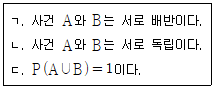 두 사건 A, B에 대하여 P(A)=1/3, P(A|B)=1/9, P(A∩B)=1/12 일 때, 옳은 것만을 모두 고르면?