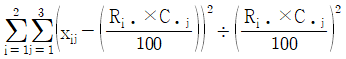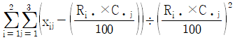 성별과 와인 생산지의 선호도가 관련이 있는지를 알아보기 위해 100명을 임의추출한 후 성별과 와인 생산지 선호도를 조사하여 작성한 분할표가 다음과 같다. 성별과 와인 생산지 선호도가 관련이 있는지를 검정하는 카이제곱검정통계량의 값은?