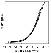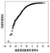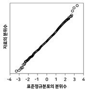 정규분포로부터 임의추출한 자료의 정규확률그림(정규분포 분위수대분위수 그림, normal probability plot)은?
