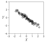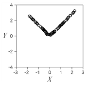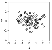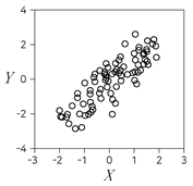 다음 제시된 두 변수 X와 Y에 대한 산점도 중 X와 Y의 표본상관계수(피어슨의 표본상관계수)가 가장 큰 것은?