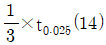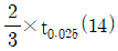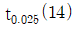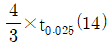 어떤 회사에서 생산하는 건전지의 평균 수명은 300일이라고 알려져 있다. 이를 확인하기 위하여 건전지 15개를 임의추출하여 구한 평균 수명(단위: 일)에 대한 95% 신뢰구간은 (296,308) 이었다. 귀무가설 “건전지의 평균 수명은 300일이다.”와 대립가설 “건전지의 평균 수명은 300일이 아니다.”에 대한 검정에서 t-검정통계량의 값과 같은 것은? (단, 건전지의 수명은 정규분포를 따른다고 하며, tα(k)는 자유도가 k인 t분포의 제100×(1-α) 백분위수를 나타낸다)